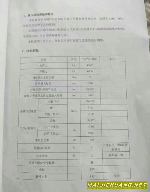产品名称:铭格4000吨液压机,台面3000年准新机,感兴趣的联系