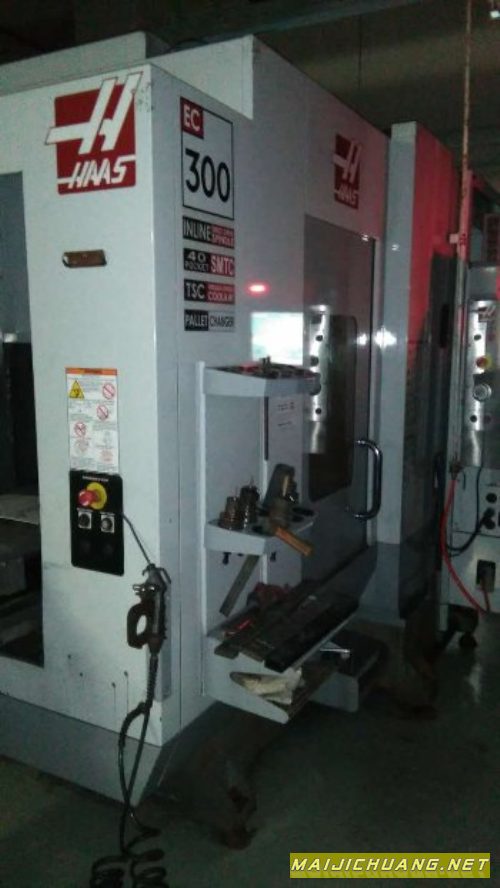出售一台哈斯EC300卧式加工中心,哈斯原装系统,可编程冷却液喷嘴,12,000 rpm、40锥度的主轴,30马力双驱动,高速侧挂式刀库,40锥度,40 1刀具,包括辅助过滤器(AF),主轴内冷,300 PSI